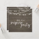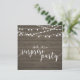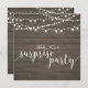 Celebre seu dia especial com este modelo de convite de festa surpresa elegante. Este design apresenta caligrafia sofisticada e luzes de corda com um fundo de madeira rústica. Perfeito para uma festa de aniversário de casamento no quintal, celeiro ou com tema vintage.
