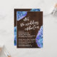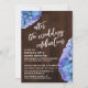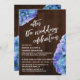 Aqui está uma escolha casual e rústica para as necessidades da sua celebração pós-casamento. Sobre um fundo de madeira escura, coloquei um gráfico de tipografia que diz "celebração após o casamento", apresentando uma fonte de letra manuscrita moderna. Sobre a imagem de fundo, coloquei flores de água representando hortênsias em azul, lilás roxo e toques sutis de verde. Gire as flores para mais ou menos dos tons que você preferir, para combinar com a sua paleta de cores. Use os campos do modelo para adicionar seus próprios detalhes e clique para personalizar ainda mais se desejar fazer quaisquer modificações adicionais. Todas as camadas estão desbloqueadas para permitir todo o controle de posicionamento e dimensionamento que você desejar.