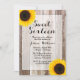 Um doce girassol rústico de 16 convite de aniversário. Apresentando girassóis amarelos sobre fundo de madeira de celeiro.