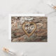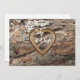 Foto da casca da árvore com moldura entalhada a ouro vintage para seus nomes ou iniciais. Lindas flores brancas adicionam um toque de elegância a este cartão de resposta. Há um convite de casamento correspondente.