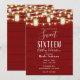 Convite Madeira Vermelha e Luzes de Corda País Rústico Doc