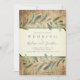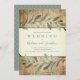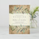 Um convite botânico rústico, elegante do casamento limitado em videiras azul esverdeado da aguarela com um fundo de madeira afligido.