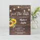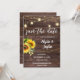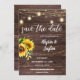 Convide seus amigos e família para o seu chá de panela com este bonitinho rústico ou country Sunflower, Wood, & Mason Jar string luzes salvam o convite de data.