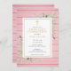Apresentando delicadas folhas verde-aquarelas em um fundo rosado de madeira rústica, e um elegante crucifixo de ouro, este primeiro convite de santa comunhão chic pode ser personalizado com suas informações especiais. Projetado por Thisnotme©
