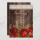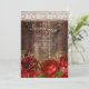 Convite para festa surpresa de 75 anos para mulheres com madeira marrom escura rústica e flores vermelhas e douradas em burlap com renda branca elegante. Entre em contato conosco para obter ajuda com personalização ou para solicitar produtos correspondentes.