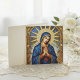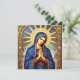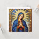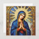 "Este requintado design apresenta um retrato da Virgem Maria representado em um estilo de mosaico rico e detalhado. Ela é retratada com uma expressão serena, olhos fechados em oração e mãos entrelaçadas. Ela está envolta em um manto azul profundo adornado com acabamentos em ouro e estrelas, contra um fundo arqueado de um brilho solar radiante e um céu estrelado. A textura intrincada do mosaico e os acentos dourados dão à imagem um senso de grandeza sagrada e arte eternidade. Este design é altamente adequado para produtos com um tema religioso, histórico ou de arte clássica. Imagine-o em ícones religiosos, itens devocionais, impressões de arte emolduradas ou papelaria elegante."