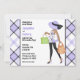 Um chá de fraldas neutro em termos de gênero, simples e limpo convida com um padrão de xadrez em lavanda roxo, preto e branco com uma Mãe a vestir-se tão chique ao combinar visto e chapéu maternidade. A nova mãe tem uma cor mais escura e funcionaria bem para famílias latinas ou afro-americanas.