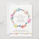 Uma pena tribal boêmica boêmica e miçangas de aquarela eram um convite de bênção de mãe multicolorida e rosa. Penas bonito para a liberdade espiritual e miçangas para amizade. O convite é especificamente desenhado para uma Bênção ou Bênção-Mãe tradicional dada em vez de um chá de fraldas como mais espiritual e pode ser uma forma mais relaxada de celebrar a bênção de um novo bebê para a mãe ser. Personalize com o nome, local e detalhes da sua própria mãe, a cor de fundo no verso também pode ser alterada para se adequar ao seu tema de cor ou à sua própria cor preferida, atualmente rosa. Outros itens correspondentes disponíveis. Arte com aquarela original de Sarah Trett para www.mylittleeden.com no zazzle.