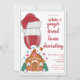 Prepare-se para as mães beberem vinho enquanto as crianças decoram suas casas de pão de gengibre! Este convite apresenta um design festivo de pão de gengibre e um copo de vinho com um chapéu de Papai Noel para criar condições para uma reunião divertida e criativa. Junte-se a nós para uma noite acolhedora e feliz de vinho e pão de gengibre decorando uma casa.
