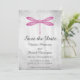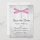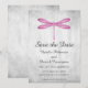 Elegante e simples convite de casamento para salvar a data, apresentando uma libélula magenta contra um fundo cinza desgastado. Este design é uma escolha única para anunciar um casamento moderno. Fácil de personalizar com os detalhes do seu casamento. Clique em "Personalize" para encontrar mais opções de personalização.