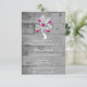Crie um convite exclusivo para todos os seus, com um chá de panela Magenta Árvore de Corações. Design de convite apresenta um fundo de madeira de cinza adornado com uma árvore com corações florescentes nos seus ramos. Personalize com os nomes do noivo e da noiva junto com os detalhes do chá de panela. Material adicional disponível com esta design também.