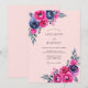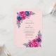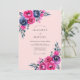 This design features a soft blush background adorned with vibrant watercolor floral clusters. Painterly fuchsia and navy blue roses are accented by deep indigo leaves, creating a bold yet romantic mood. The lush botanical elements are perfect for a seasonal event with a rich color palette.