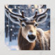 Fotografada de Perto Está a Bela Rena do Papai Noel Toda Coberta de Neve.