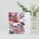 Folheto mágico colorido e extravagante de bosques encantados sentado em um cogumelo vermelho cercado por folhas roxas, amarelas e marrons de outono, castanhas, frutas vermelhas. Pintura em aquarela 2010 por Alessandro Lumini. Design elegante, sofisticado e único, fácil de personalizar para casamento, anúncio de núpcias, cartões de mesa, agradecimentos, chá de bebê, festas de aniversário infantil, chá de noiva, festa de 16 anos, aniversário, chá de noivado romântico, Natal, feriados, escritório, reuniões de família, celebrações de Ano Novo, encontros, formaturas escolares, concertos, recitais ou qualquer outro evento que você desejar!