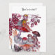 Folheto mágico colorido e extravagante de bosques encantados sentado em um cogumelo vermelho cercado por folhas roxas, amarelas e marrons de outono, castanhas, frutas vermelhas. Pintura em aquarela de 2010 por Alessandro Lumini. Design elegante, sofisticado e único, fácil de personalizar para casamento, anúncio de núpcias, cartões de mesa, agradecimentos, chá de bebê, festas de aniversário infantil, chá de noiva, festa de 16 anos, aniversário de casamento, chá de noivado romântico, Natal, feriados, escritório, reuniões de família, celebrações de Ano Novo, encontros, formaturas escolares, concertos, recitais ou qualquer outro evento que você desejar!
