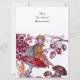 Folheto mágico colorido e extravagante de bosques encantados sentado em um cogumelo vermelho cercado por folhas roxas, amarelas e marrons de outono, castanhas, frutas vermelhas. Pintura em aquarela 2010 por Alessandro Lumini. Design elegante, sofisticado e único, fácil de personalizar como convite de casamento, anúncio de núpcias, cartões de mesa, agradecimentos, chá de bebê, festas de aniversário infantil, chá de noiva, festa de 16 anos, aniversário de casamento, chá de noivado romântico, Natal, feriados, escritório, reuniões de família, celebrações de Ano Novo, encontros, formaturas escolares, concertos, recitais ou qualquer outro evento que você deseje!