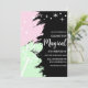 Magical kids birthday with stars and bubbles coming from a star shaped wand against a light pink and mint green background.