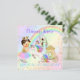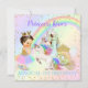 Um convite mágico para uma celebração mágica! Castelo arco-íris com carruagem e unicórnio e, claro, a bonito princesa no seu tutu e coroa do arco-íris.