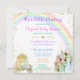 Um convite mágico para uma celebração mágica! Castelo arco-íris com carruagem e unicórnio e, claro, a bonito princesa no seu tutu e coroa do arco-íris.