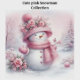 Cute watercolor pink coquette snowman in snowy forest design