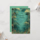 Step into a hidden sanctuary with this immersive teal forest scene. Towering, slender trees with vibrant orange-tinged canopies reach toward a misty, emerald sky, while glowing orbs of firefly light dance among the dense ferns and tiny mushrooms on the forest floor. The rich color palette and ethereal lighting create a high-fantasy atmosphere filled with mystery and wonder. As a wedding invitation, this piece is a perfect choice for a whimsical outdoor ceremony, a mystical woodland celebration, or a fairy-tale event. It sets a magical and unforgettable tone for your special day, inviting guests into a world of natural enchantment. In accordance with your preferences, no personal names have been included in this description.