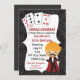 Este convite de festas personalizável do Magic Show apresenta um rapaz vestido de mágico, jogando cartas e texto personalizável.