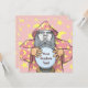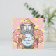 Velha feiticeiro com capa rosa e bola mágica de cristal. Use a foto facial para personalizar. Texto personalizado.