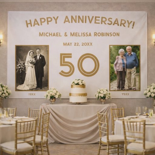 Celebre cinquenta anos de amor com este elegante convite de aniversário magnético em marfim e dourado, projetado para exibir um significativo par de fotos de então e agora. O layout refinado apresenta tons neutros suaves, letra dourada graciosa e espaço para detalhes do evento que parecem atemporais e sinceros. Ideal para celebrações de datas importantes, como aniversário de 50 anos de casamento ou renovação de votos, este cartão magnético serve como convite e lembrança duradoura. Uma bela maneira de homenagear uma história de amor que os convidados irão lembrar e exibir.
