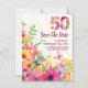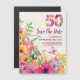 Marque a ocasião com este elegante convite de imã salve a data de 50 anos. Apresentando um fundo de linho macio com um vibrante "50" floral, este design personalizável é perfeito para compartilhar os detalhes interessantes do seu partido de marco. Aproveite!