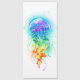 Água-viva grande, iridescente, desenhada artisticamente, brilhante, com longos tentáculos em branco, pintada sobre fundo de aquarela multicolorido. Água-viva arco-íris.