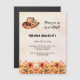 Um fundo rosa dourado, cor-de-rosa-claro. Decorado com flores laranja e um chapéu de vaqueira estilo "boho" com flores. Personalize e adicione um nome e detalhes da parte.