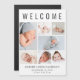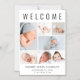 Um imã de anúncio de nascimento para apresentar seu bebê recém-nascido aos amigos e à família. Esta design apresenta "Bem-vindo" no topo da lista em grande tipografia, uma colagem de sete fotos e seu nome, data de nascimento e estatísticas de natalidade em simples tipografia moderna.