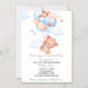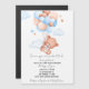 Personalize this beary loved baby shower invitation. Showing a baby bear floating in the air with cute balloons.