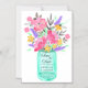 Peça aos seus entes queridos para salvar a data com estilo com este cartão magnético. Este cartão apresenta um pote de mason turquesa com um lindo e colorido buquê de aquarela. Todas as informações são escritas em um pote de mason com uma combinação de letras serifadas e caligrafia. A personalização é muito fácil com apenas um clique no botão.
