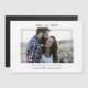 Uma simples gravação do cartão de data, para fotos personalizadas no quadro, e nomes elegantes, data e local do casamento.