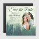Estes belos cartões salve a data magnéticos são a forma perfeita de deixar seus amigos e família saberem sobre seu próximo casamento. Eles apresentam uma design de aquarela rústica com uma montanha de pinheiros verdes envolta em neblina ou neblina. A legenda: Salvar a data com espaço para seus nomes, data e local. Perfeito para um casamento no exterior ou na montanha.
