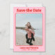 Anuncie seu grande dia em estilo com esta imã salve a data divertida e encantadora! Apresentando uma fonte vermelha no estilo retrô em um fundo rosa suave e espaço para sua foto favorita, este design é único e divertido. Uma manutenção magnética que seus hóspedes amarão — perfeita para adicionar um toque de charme e personalidade vintage à sua celebração de casamento!