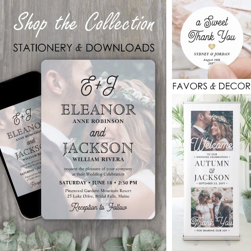 Convide a família e os amigos para uma celebração de casamento simplesmente elegante com ímãs de na moda monogramas de convite fotográfico. A imagem e toda a redação desta modelo são simples de personalizar, e a parte de trás magnética facilita a exibição de amigos e familiares. (DICA DE IMAGEM: Uma maneira fácil de posicionar uma foto exatamente como você deseja é recortá-la antes de carregá-la no site do Zazzle.) A estética geral dessa design é chique e moderna com um pouco de talento de vintagem. Ele apresenta uma foto do casal engajado sobrecarregado com caligrafia retrorreflectora de tendências e tipografia serif clássica. Todos os textos de cerimônia e recepção podem ser personalizados ou excluídos. Este único cartão de convite magnético preto-e-branco faz uma elegante adição a uma celebração de dia especial. Parabéns para a noiva e o noivo!