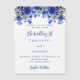 Um fundo branco, decorado com flores azuis e brancas. Personalize e adicione seus nomes e detalhes.