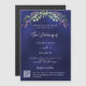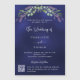 Um fundo azul marinho decorado com flores lavandas e verde de eucalipto. A cor azul é irregular. Personalize e seus nomes e detalhes. Adicione o URL do seu site de casamento ao código QR para obter detalhes e/ou RSVP.