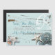 Convite Magnético Casamento de madeira elegante conchas azuis na pra