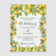 Um fundo verde de cor aquosa. Decorado com limões amarelos e folhagem verde. Personalize e adicione seus nomes e detalhes. O nome é escrito com um script de estilo manuscrito.