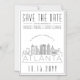 Um convite de save the date magnético em estilo deco único para um casamento que ocorrerá na bela cidade de Atlanta, Geórgia. Este convite apresenta uma ilustração estilizada da silhueta única da cidade com seu nome abaixo. Isto é seguido pelas informações do seu dia de casamento em um estilo de linha aberta correspondente. Por ser um ímã de geladeira, é uma ótima maneira de lembrar e entusiasmar seus convidados para a sua futura viagem para o destino do seu casamento na cidade. Todos os elementos individuais do convite estão desbloqueados, então sinta-se à vontade para alterar quaisquer detalhes necessários, como tamanhos de fonte, estilos e muito mais, usando a função de personalização. Divirta-se sendo criativo!