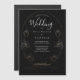 Um convite de casamento magnético, na moda, gótico em preto, tons de ouro e branco. Ele tem uma estrutura floral com rosas. Este convite mistura um humor memorável com elegância, deixando-te design o teu casamento como quiseres. Simplesmente adicione seu texto, adicione este convite ao seu carrinho, depois faça um casamento que comece sua nova vida e veja tudo no final. Design de Feriado de Natal Gótico Negra Floral | ©Melissa Patton - Designer