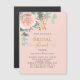 Um fundo cor de pêssego da moda. Decorados com ouro-rosa e folhas de eucalipto cor-de-rosa-esbranquiçada, flores de rosa e cor-de-rosa-esbranquiçada, galhos, verde-verde e um cinzeiro de ouro falso. Personalize e adicione o nome da noiva a ser e os detalhes da festa. Texto preto, verde e ouro.