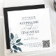 Elevem seu casamento com este cartão de convite prático e na moda. A elegante design apresenta folhagem azul empoeirada num pano de fundo branco, criando uma estética sofisticada e eterno. Personalize os detalhes para corresponder ao seu estilo exclusivo e ao tema do casamento. Com o código QR incluído, os convidados podem acessar facilmente o site do seu casamento e descobrir informações adicionais sobre o seu dia especial. O recurso de ímã permite que os convidados o coloquem em qualquer lugar em sua casa, servindo como um belo e personalizável lembrete do seu grande dia. Este convite dá o tom perfeito para uma experiência inesquecível de casamento, fornecendo aos convidados todos os detalhes necessários. Faça uma impressão duradoura enviando esses convites personalizados e criando memórias que serão apreciadas para sempre.