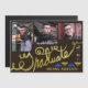 Estes convites magnéticos elegantes | Os anúncios são a forma perfeita de celebrar a sua formatura. Sua colagem de fotos preenche o topo. Na parte inferior, a palavra "FORMANDO" é escrita em falsa tipografia cursiva dourada, com aspecto texturizado, juntamente com um design de triângulo moderno em dourado falso e azul. Adicione facilmente o nome do formando e o ano da classe. Esses convites magnéticos tradicionais têm uma aparência formal. Para redimensionar ou remover elementos ou ajustar fontes e tamanho do texto, clique em "Personalizar." Você também pode ajustar suas fotos e mudar a cor do fundo castanho-escuro.