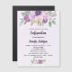 Um fundo violeta, lavanda, de cor aquosa. Decorados com flores violetas e púrpuras, de cor aquosa e verde e uma cruz de ouro. Personalize e adicione seu nome e detalhes de recepção.