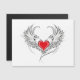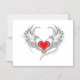 Coração vermelho pintado artificialmente com cinza de asas de anjo, decorado com contorno liso preto.