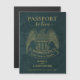 Esses cartões salve a data magnéticos bonitos são uma forma excelente de deixar seus amigos e família saberem sobre seu casamento de destino. Concebido para se parecer com a frente de um passaporte, apresenta um pano de fundo de couro preto ou turquesa com texto dourado e uma águia americana. Único, na moda e divertido.
